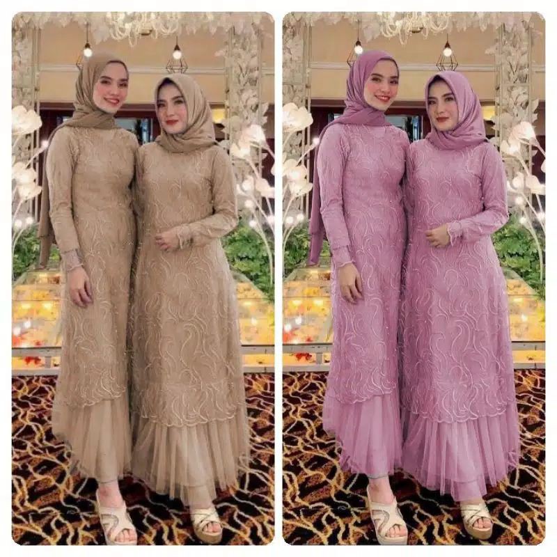 15 model baju gamis brokat pesta pernikahan terbaru 2019/2020.